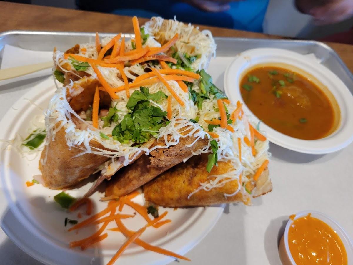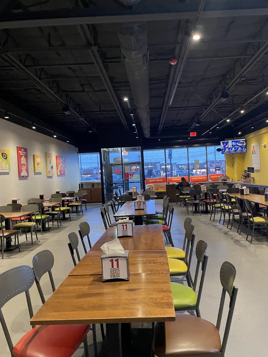 Decent spot to get some Indian street food/snacks. Everything came out well and tasted great. There’s lots of seating but the decor felt a little out dated which might throw some people off.
